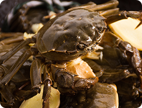 每逢炎夏,青母蟹會(huì)在產(chǎn)卵時(shí)棲身于淺灘河畔,在陽光的照射下,體內(nèi)的蟹膏分解成金黃色的油脂,然后滲透到體內(nèi)的各個(gè)部分,使得整只蟹晶瑩剔透、充滿黃油,因此被稱為黃油蟹。